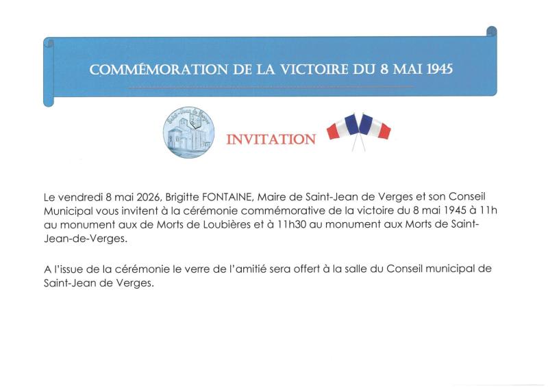 Invitation cérémonie commémorative du 8 Mai