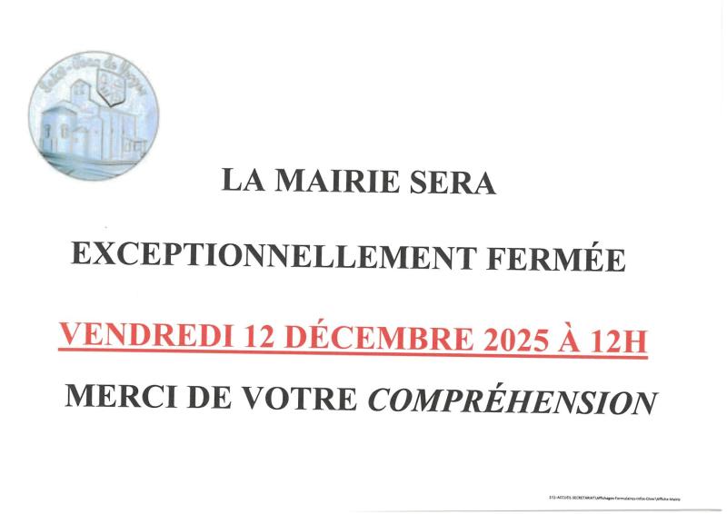 Fermeture exceptionnelle vendredi 12 décembre après-midi